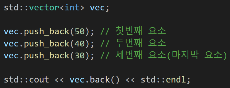 5) vector.back() : 마지막 원소 반환