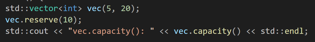 여기서 reserve(크기)라는 함수를 사용하게 되면 vector의 capacity를 어느정도 크기를 줄것인지를 지정해서 크기가 늘어날때 마다 재할당이 일어나지 않게 만들 수 도 있다.