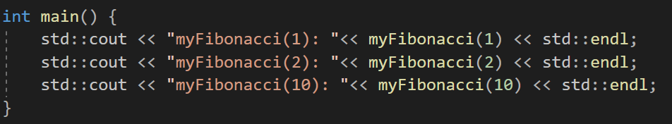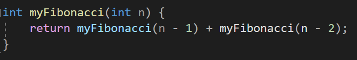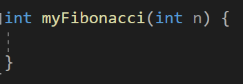 이걸 함수로 만들어보면 먼저 동일하게 반환형 int, 매개변수 int를 하나 받는 피보나치 함수를 만들어주고