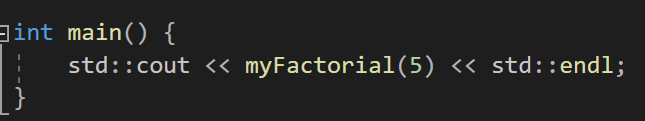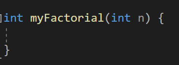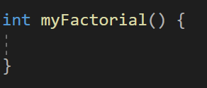 이걸 재귀함수로 만들어보자면 반환타입이 int인 팩토리얼이란 이름을 가진 함수를 만들어주고