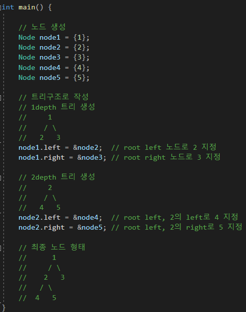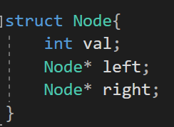 그래서 Node의 멤버로 Node타입을 넣기 위해 Node 포인터를 사용해서 left와 right 노드를 추가한 것이다.
