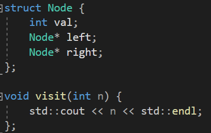 동일하게 코드에서 Node 구조체와 visit함수는 유지한 채로