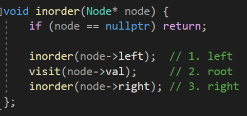 중위 순회에서도 Node 구조체와 visit함수를 그대로 사용하고