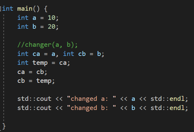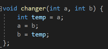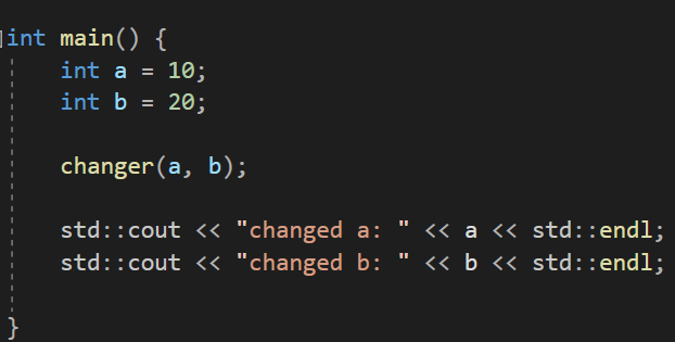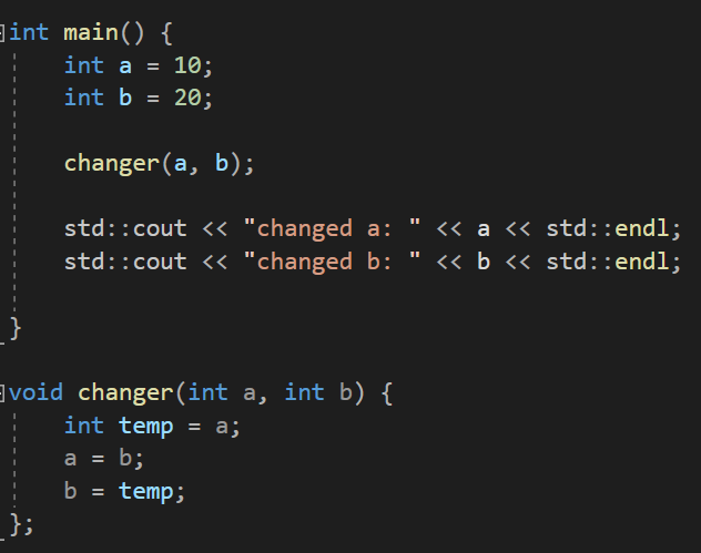 이 changer 함수는 int 값 2개를 전달 받아 값을 서로 바꿔주는 함수이다.