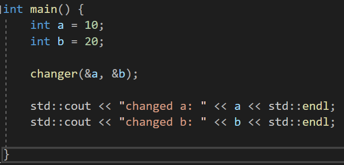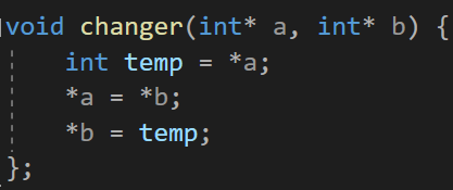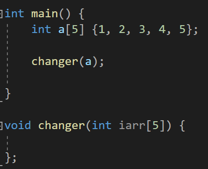 이렇게 main에서 배열을 만들어 배열의 이름을 전달하면 changer에서 배열로 값을 받을 수 있다.