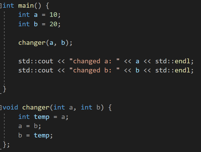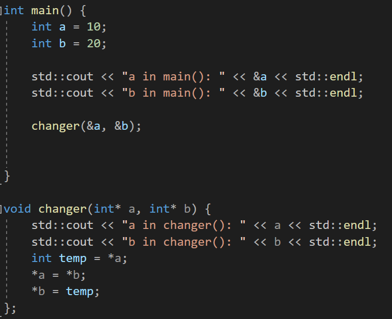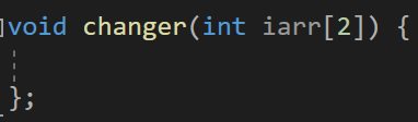 이렇게 main에서 배열을 만들어 배열의 이름을 전달하면 changer에서 배열로 값을 받을 수 있다.