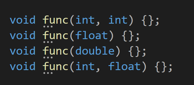 double func(int a){ // ❌ 반환형이 다르더라도 매개변수가 동일하기에 오버로딩 되지 않음