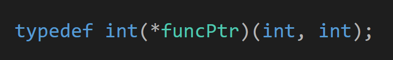 이러면 반환값 int형이고 매개변수로 int타입 두개를 받는 함수에 대해서는 FuncPtr을 통해서 선언이 가능해진다.