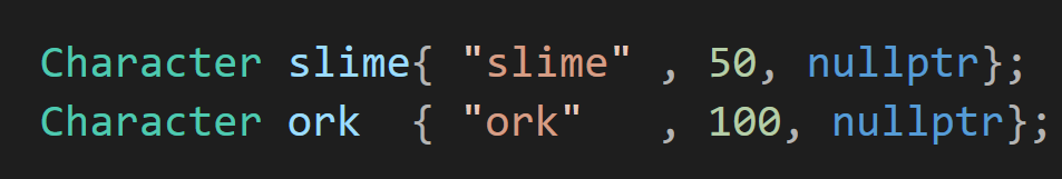 이제 메인 함수에서 구조체를 선언할때 몬스터 캐릭터에는 그냥 nullptr을 전달하고