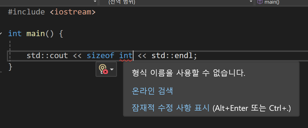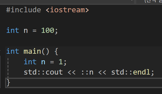 이 때 만약 전역변수를 보고 싶다면 앞에 추가적인 내용 없는 :: 연산자를 붙여주면
