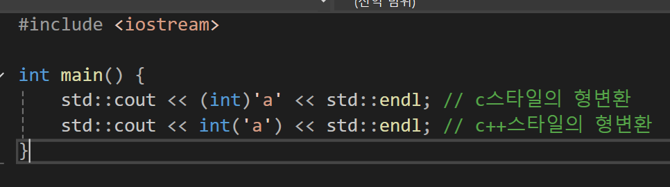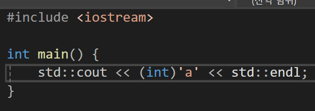 우리가 명시적 형변환을 사용한 경우는 문자의 아스키 코드 값을 확인하고 싶을때