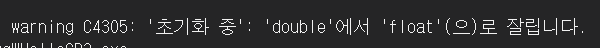 이런식으로 double형인 1.1을 float에 넣으면서 데이터가 소실 될 수 있다고 알리고 있다.