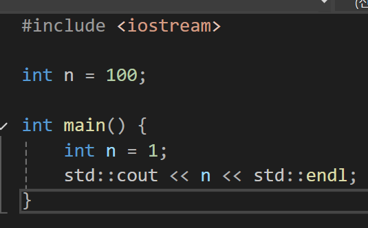 만약 위와 같이 전역변수 n이 존재하고 main함수 내부에 지역변수 n이 존재한다면 출력하려는 n은 무엇을 지칭하는 것일까?