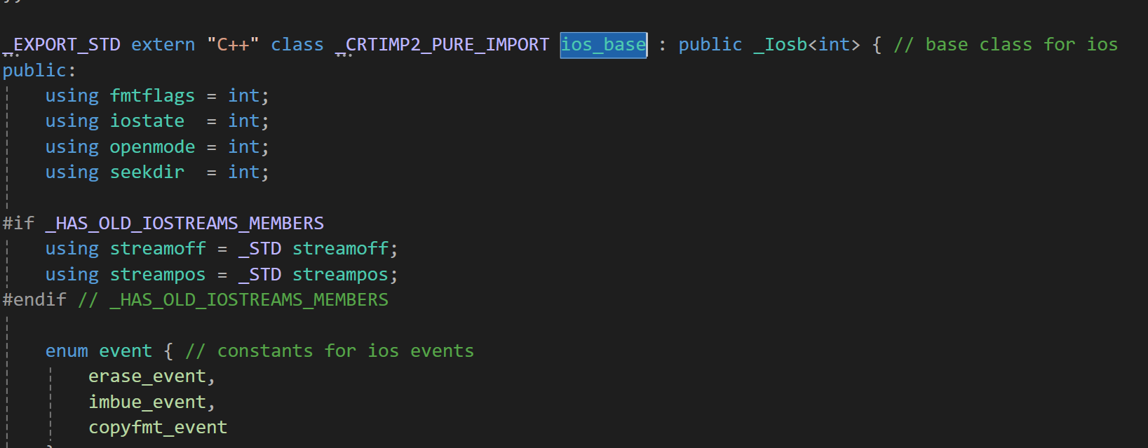 이렇게 ios_base라는 클래스에 있는 값을 사용하겠다는 것이라고 보면 된다.
