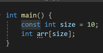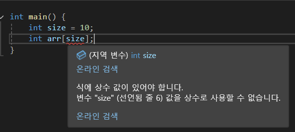 만약 이렇게 변수를 넣어서 사이즈를 넣기 위해서는 변수를 상수로 전환시켜야만 한다.