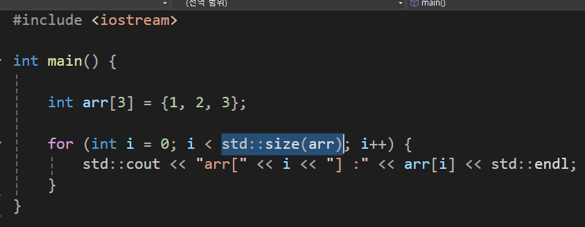 근데 std안에 size라는 함수가 있고 이걸 통해서 간단하게 이 크기를 만들어 내는것도 가능하다.