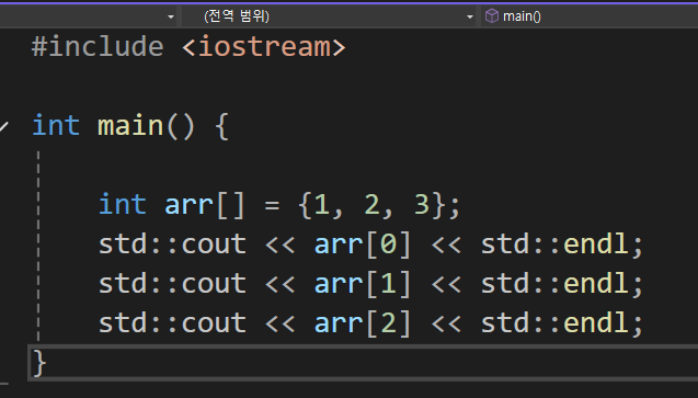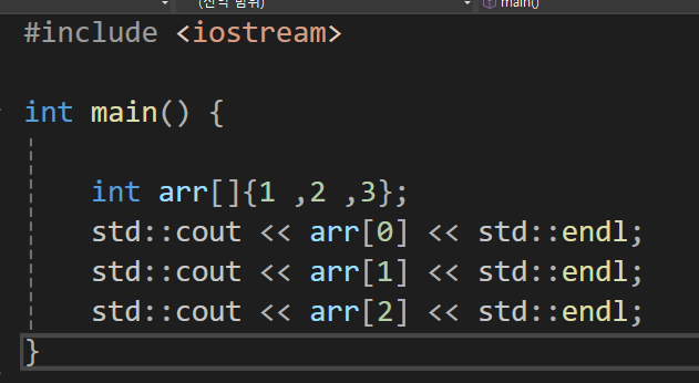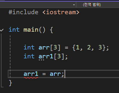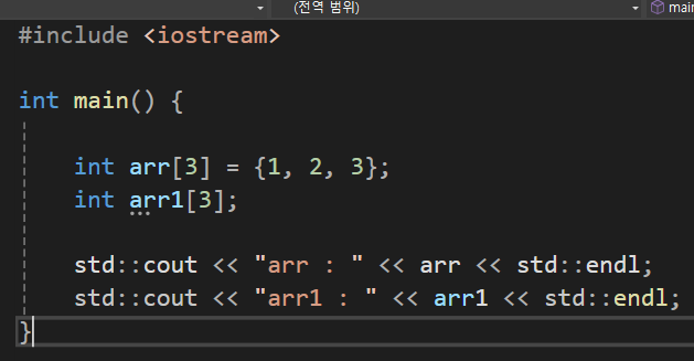 int arr[3]{1, 2, 3} // = 연산자 없이 초기화