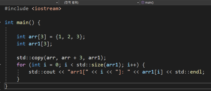 - last: 복사할 배열의 종료점 (arr[3]의 경우는 arr + 3 에 해당함 )