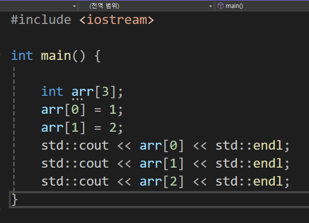 int arr[3]{}; // => 기본으로 0으로 초기화