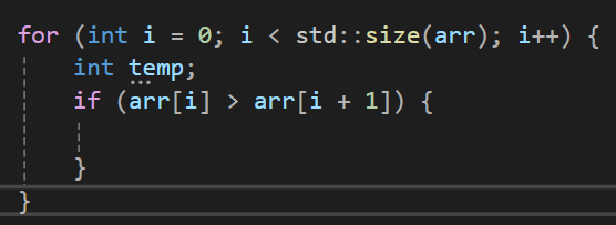 첫번째 요소와 두번째 요소를 비교해준 후에 큰 값을 뒤로 이동시키는데 잠깐 이동시킬 값을 담아둘 temp를 먼저 선언해준 다음에 조건 절을 추가하자