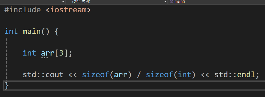 그러니 sizeof(배열 변수)로 넣어준 다음에 sizeof(배열의 타입)으로 나눠주면 그 배열의 크기가 나온다.