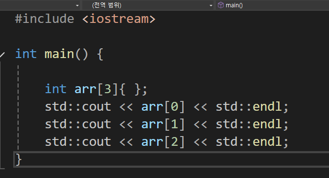int arr[3]{}; // => 기본으로 0으로 초기화