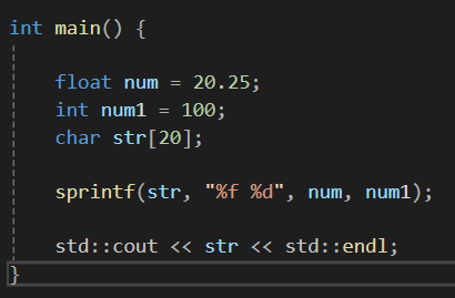 sprintf는 printf처럼 서식 문자열(format string)을 사용하지만, 출력을 문자열로 저장하는 함수로 콘솔에 출력결과를 출력하는게 아니라 문자열 버퍼에 저장한다.