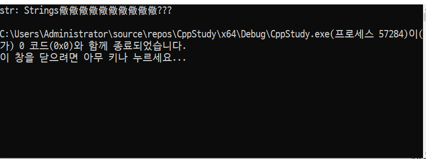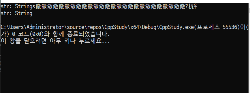 이건 널문자를 찾지 못해 다음 널문자가 존재하는 부분까지 출력했기 때문이다.