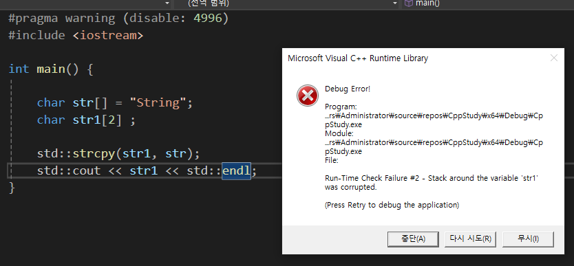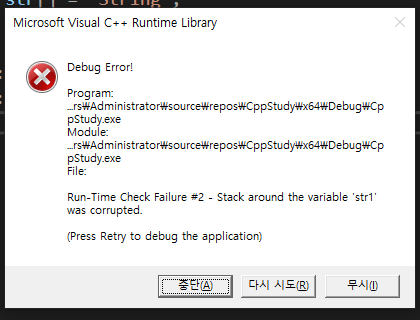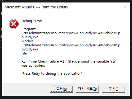 이렇게 배열의 범위를 넘어서는 배열을 집어 넣으려고 하면