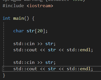 이 경우엔 scanf를 사용했을때와 같이