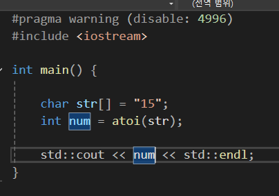 이렇게 atoi(ASCII to Interger)함수를 사용해서