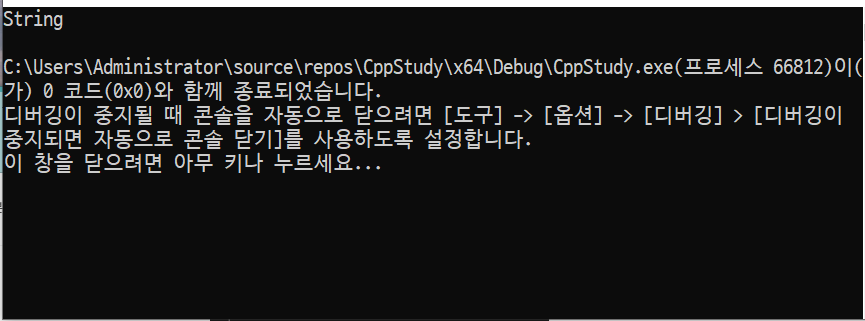 std::cout << "String" << std::endl;