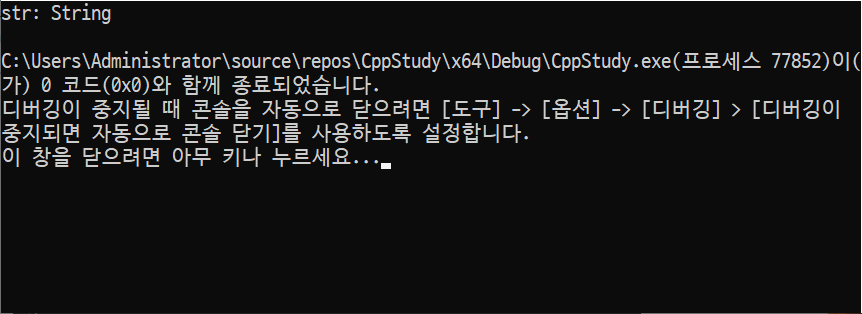 과 같이 str에 들어가 있게 된다.