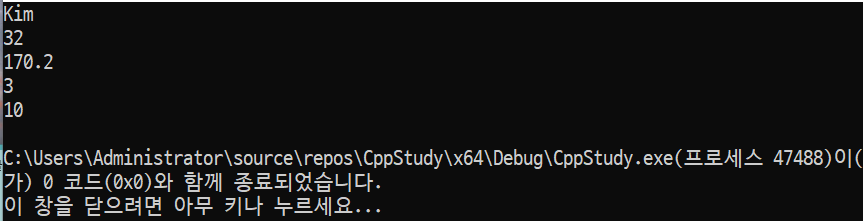 이렇게 순서에 맞게 name, age, height에 대한 정보를 타입에 맞게 넣어주면 초기화가 된다.