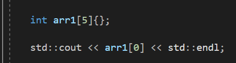 std::array<int, 5> arr{}; // - 초기화되지 않은 값 0으로 초기화