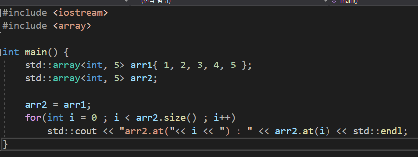 std::array를 사용한다면 array라는 라이브러리를 include 해줘야한다.