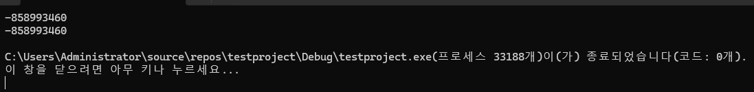 이렇게 쓰레기값을 출력하고 코드 : 0 으로 main함수가 0을 반환하면서 종료가 됐었는데