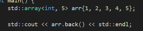 std::array<int, 5> arr{1, 2, 3, 4, 5};