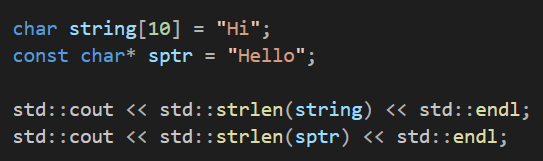 추가적으로 문자열에서 사용하던 함수(std::strlen(), std:: strcpy(), std:: strcmp()등..)도 그대로 사용이 가능하다.
