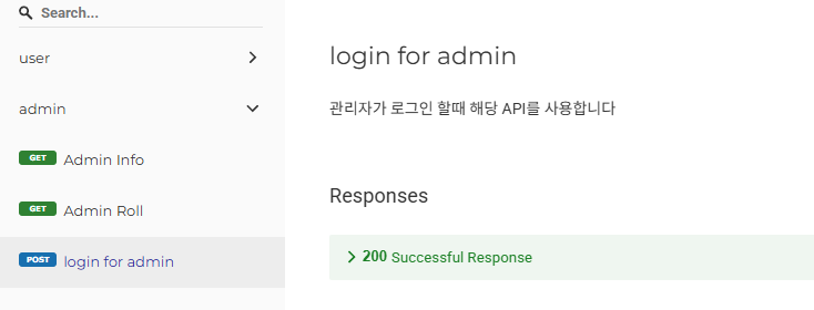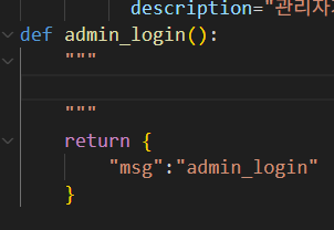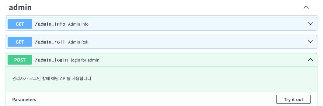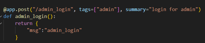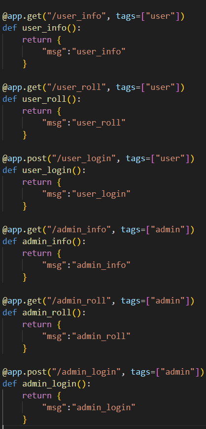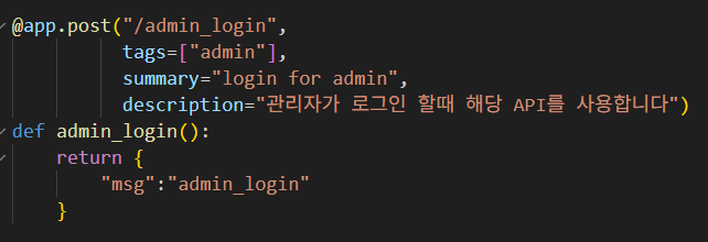 여기서 라우팅 데코레이터에 tags로 str로 된 단일 배열로 user에 대한건 "user"로 admin에 대한건 "admin"으로 설정해주면