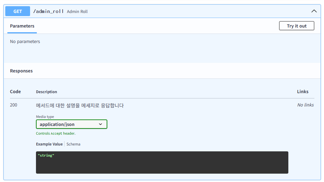 ReDoc에서는 해당 API를 선택하면 상세에서 나오게 된다.