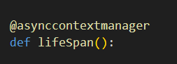 먼저 lifespan을 사용하려면 contextlib의 asynccontextmanager 데코레이터를 사용해서 함수를 정의하고 이를 FastAPI에게 전달해주면 된다.