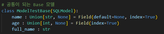 SQLModel 대신에 Base 모델을 상속해주면 된다.