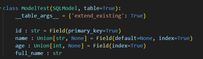 또한 Annotated[str, None]이라면 해당 컬럼의 경우는 Nullable이라는 것을 알 수 있고 default가 None으로 잡히는 것을 보면 기본 값은 None으로 들어갈 것임을 알 수 있다.