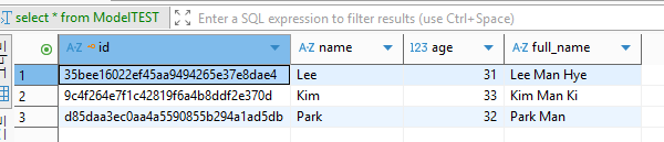 그리고 이안에 id, name, age, full_name을 멤버로 만들어주자.