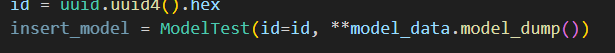 이걸 ModelTest의 생성자에 id 와 받았던 모델을 model_dump를 사용해서 복사한 다음에 **을 붙여 풀어 전달해서 완성된 ORM 모델을 만들주고