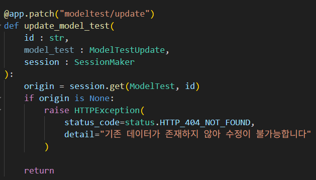 이때 id를 받은 이유가 생기는데 먼저 id를 사용해서 수정을 원하는 데이터의 원형을 확인한다.