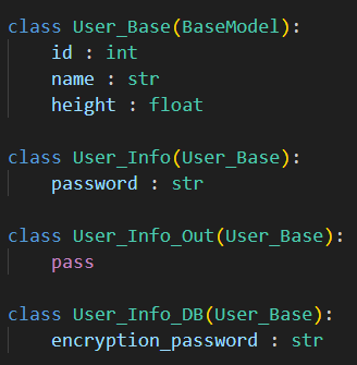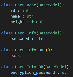 이 중복을 제거하기 위해서는 base가 되는 모델을 하나 생성해주고(기본적으로 공통되는 멤버에 대해서는 해당 모델에 작성해준다.)