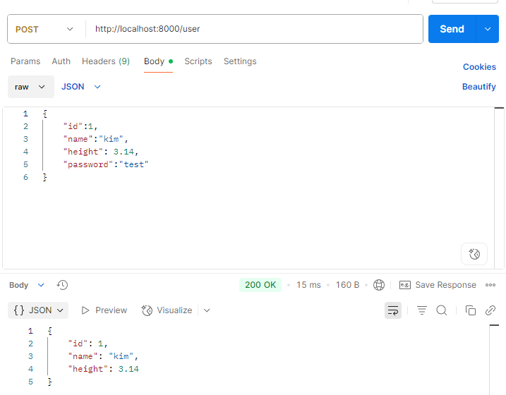 response_model에 설정된 모델의 형태에 맞게 password는 제한 응답을 반환한다.