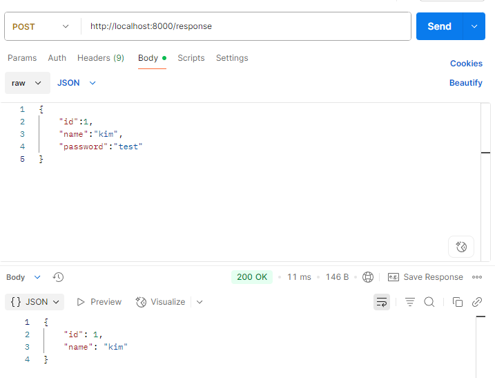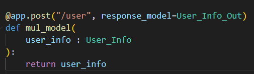 그렇기에 response_model의 형태는 응답하는 객체 자체만을 전달해줘야 한다.